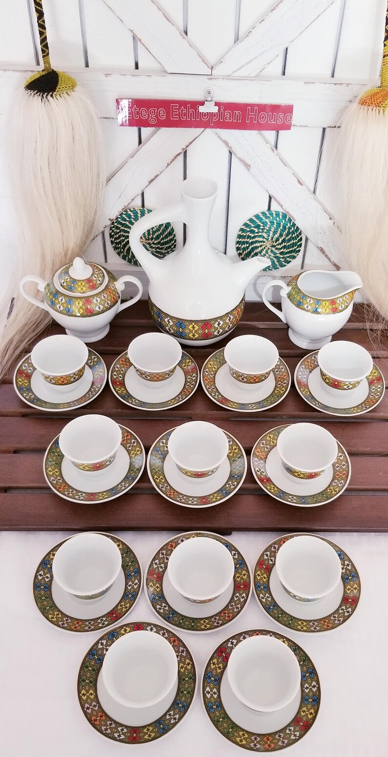 Ethiopia's coffee ceremony is an integral part of their social and cultural life. 1 coffee pot, 1 milk pot with lid, 1 sugar bowl, 6 cups and 6 saucers. It's an important cultural ritual that's been passed from generation to generation in the country believed to. Read about the ethiopian coffee ceremony at howstuffworks. Ethiopian coffee ceremony ethiopian wedding coffee set coffee cups ethiopian beauty ethiopian cuisine horn of africa coffee culture east ethiopian/eritrean coffee set, bright tebeb edition.